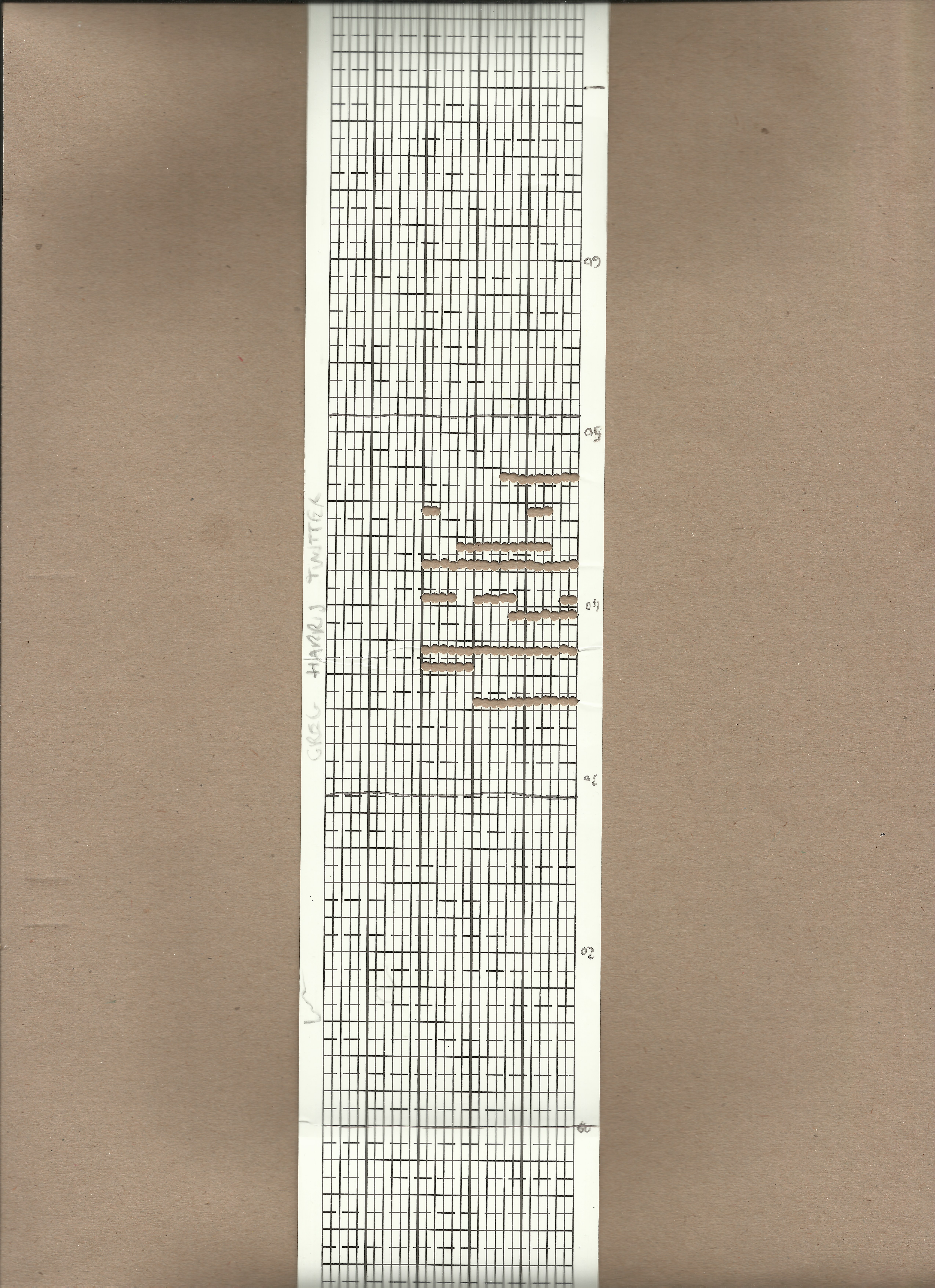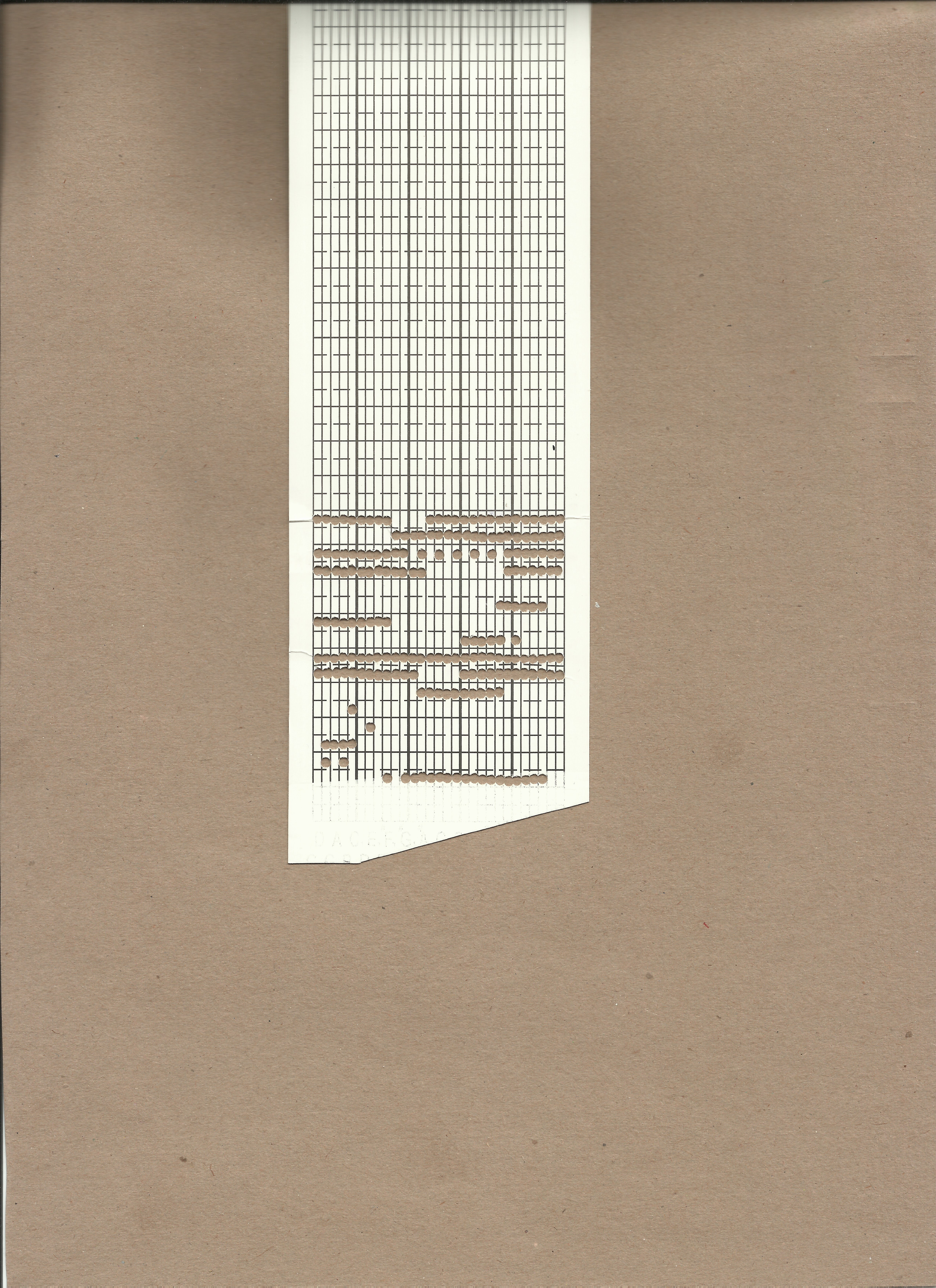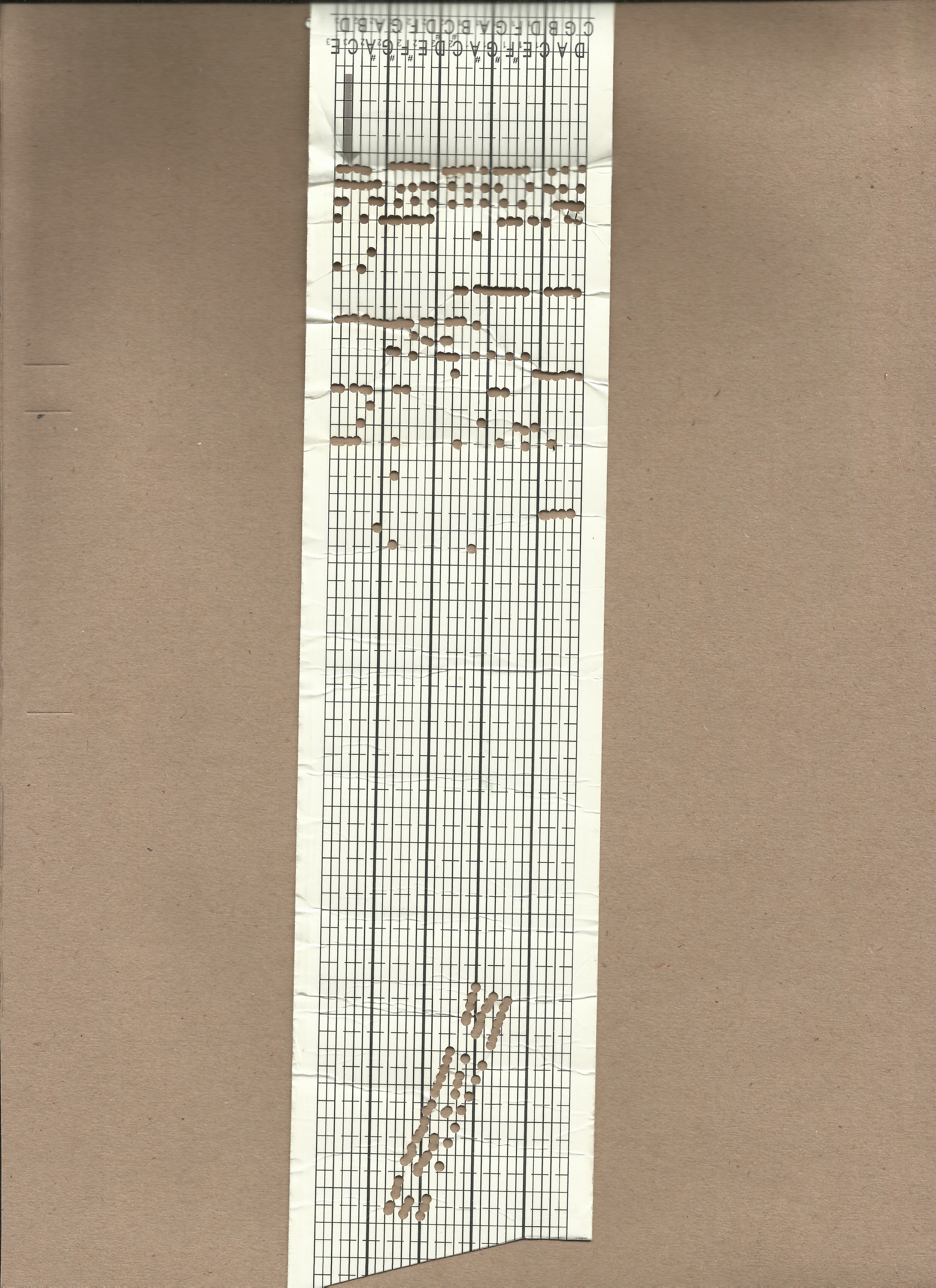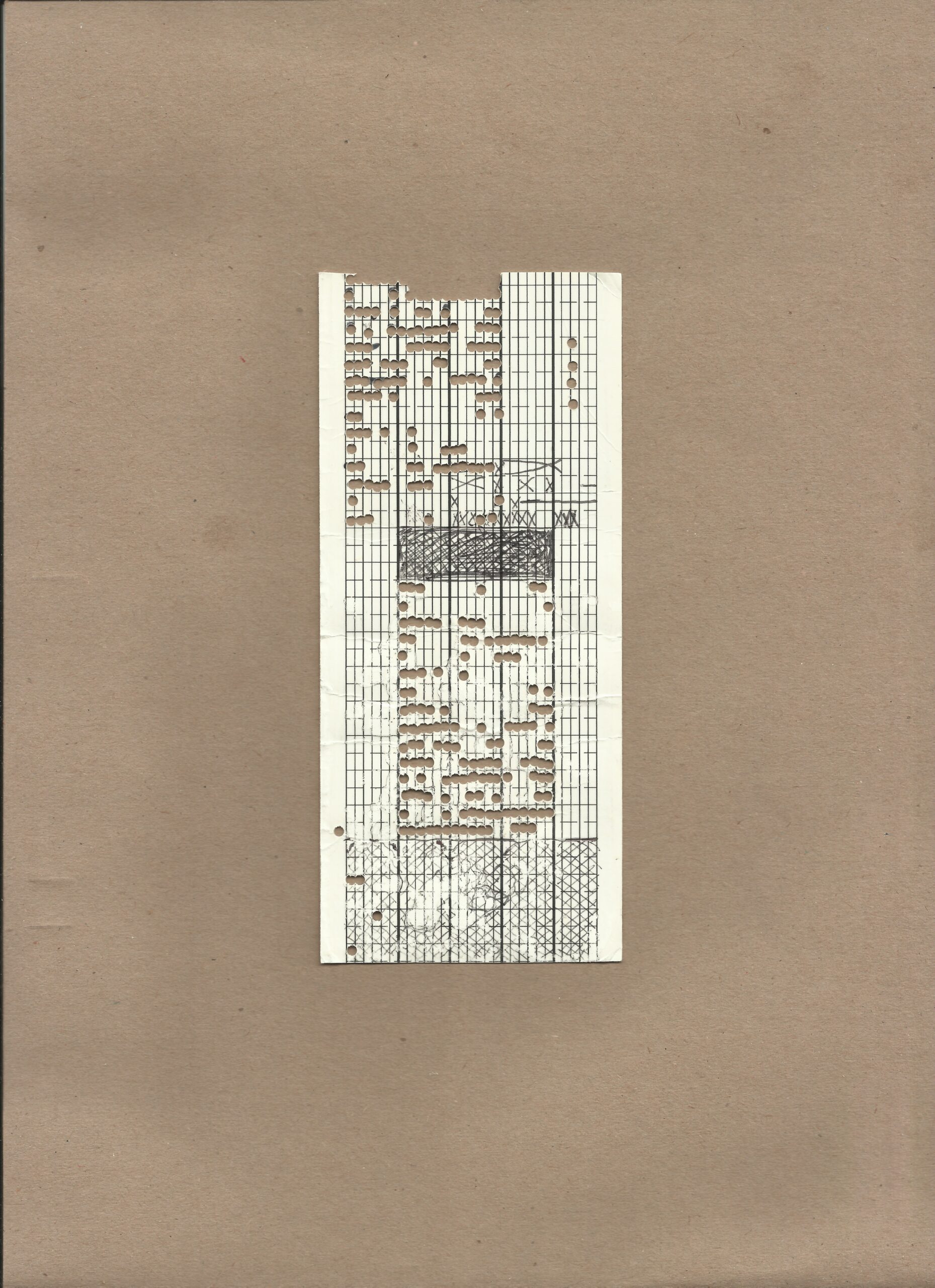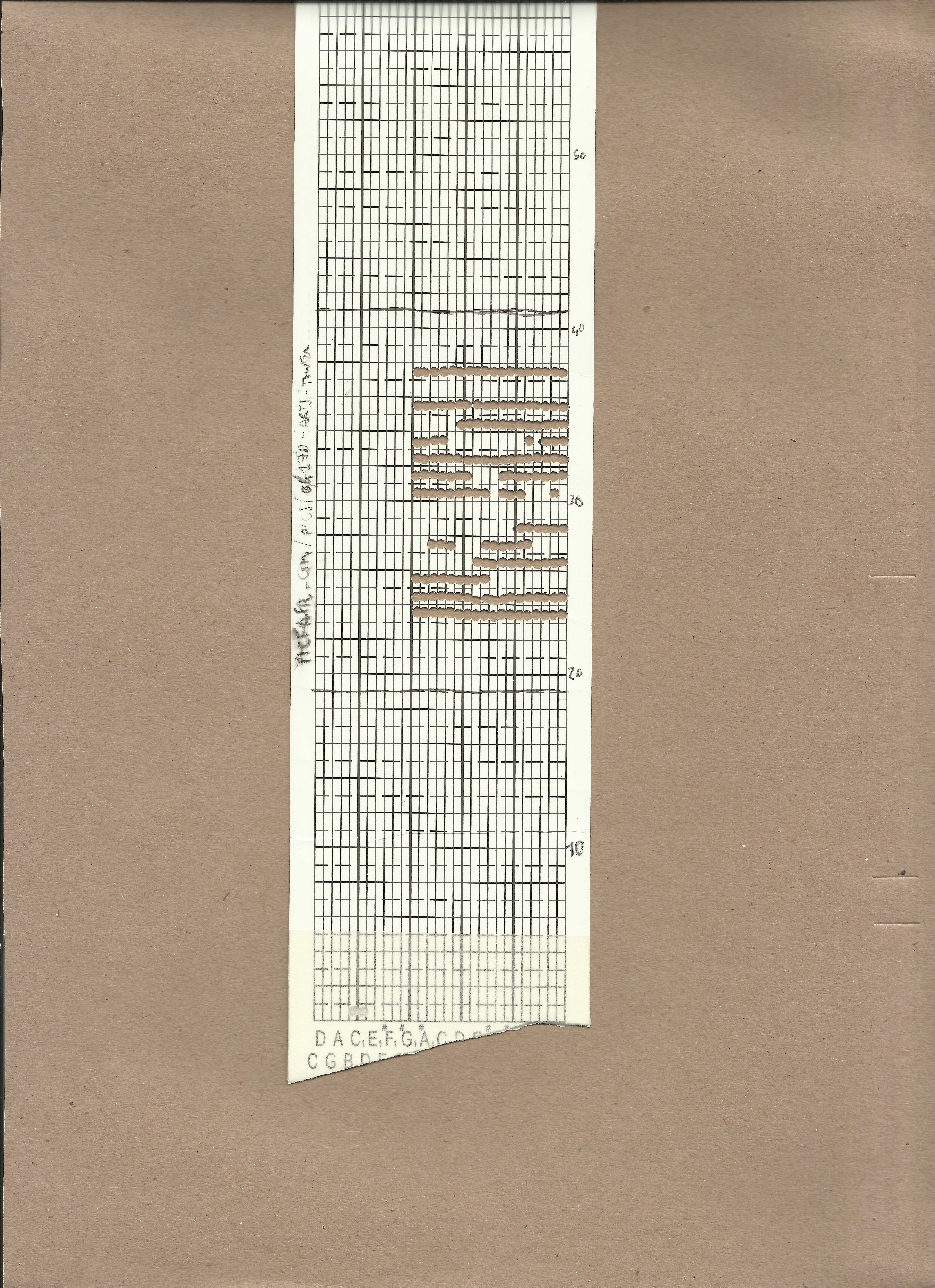 A sequence of three sound-images which together reimagines the Arts Tower as a score and composition for music box. It is a creative documentation of one of the first of a long series of transcriptions of the Arts Tower illumination into hole-punched tablature.